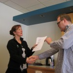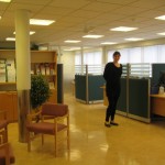 Hér má sjá nokkrar myndir sem teknar voru við flutninginn en starfsmenn eru að vonum ánægð með nýja húsnæðið sem er bæði rúmgott og bjart.